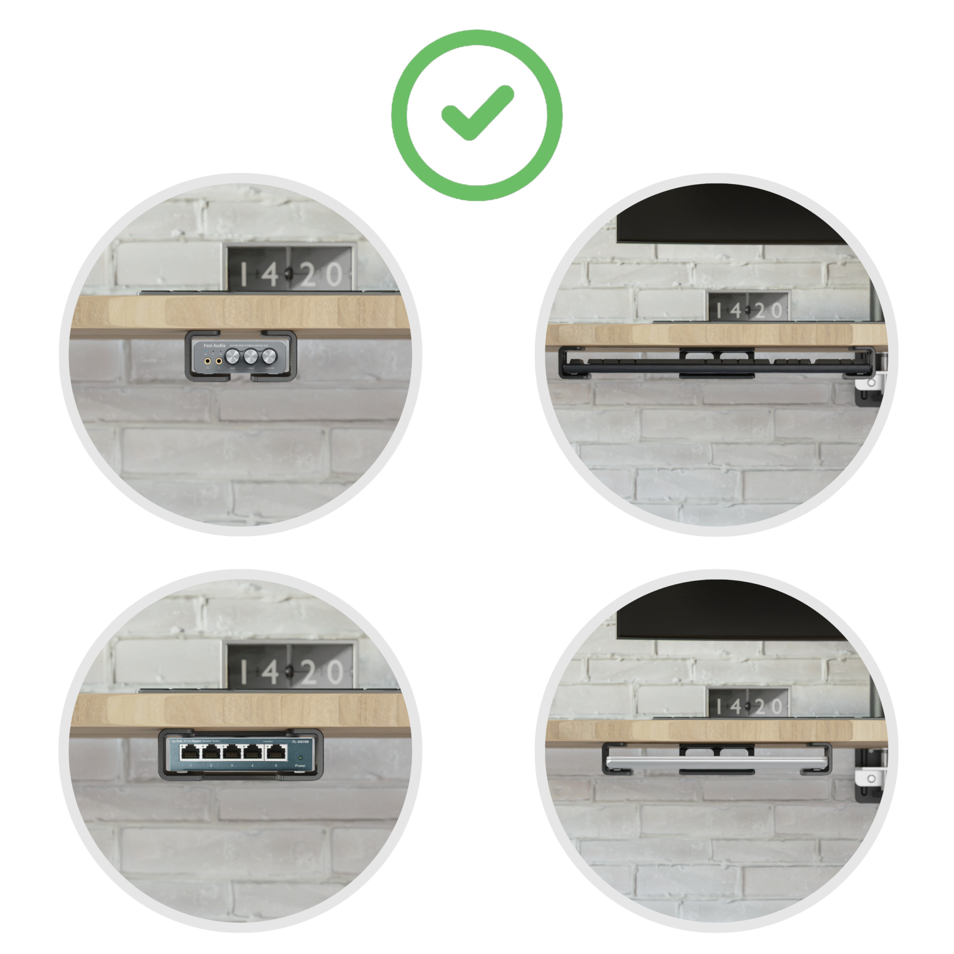- Uniwersalna kompatybilność – pasuje do laptopów, klawiatur, przełączników sieciowych, wzmacniaczy i innych urządzeń o maksymalnej grubości 35 mm.