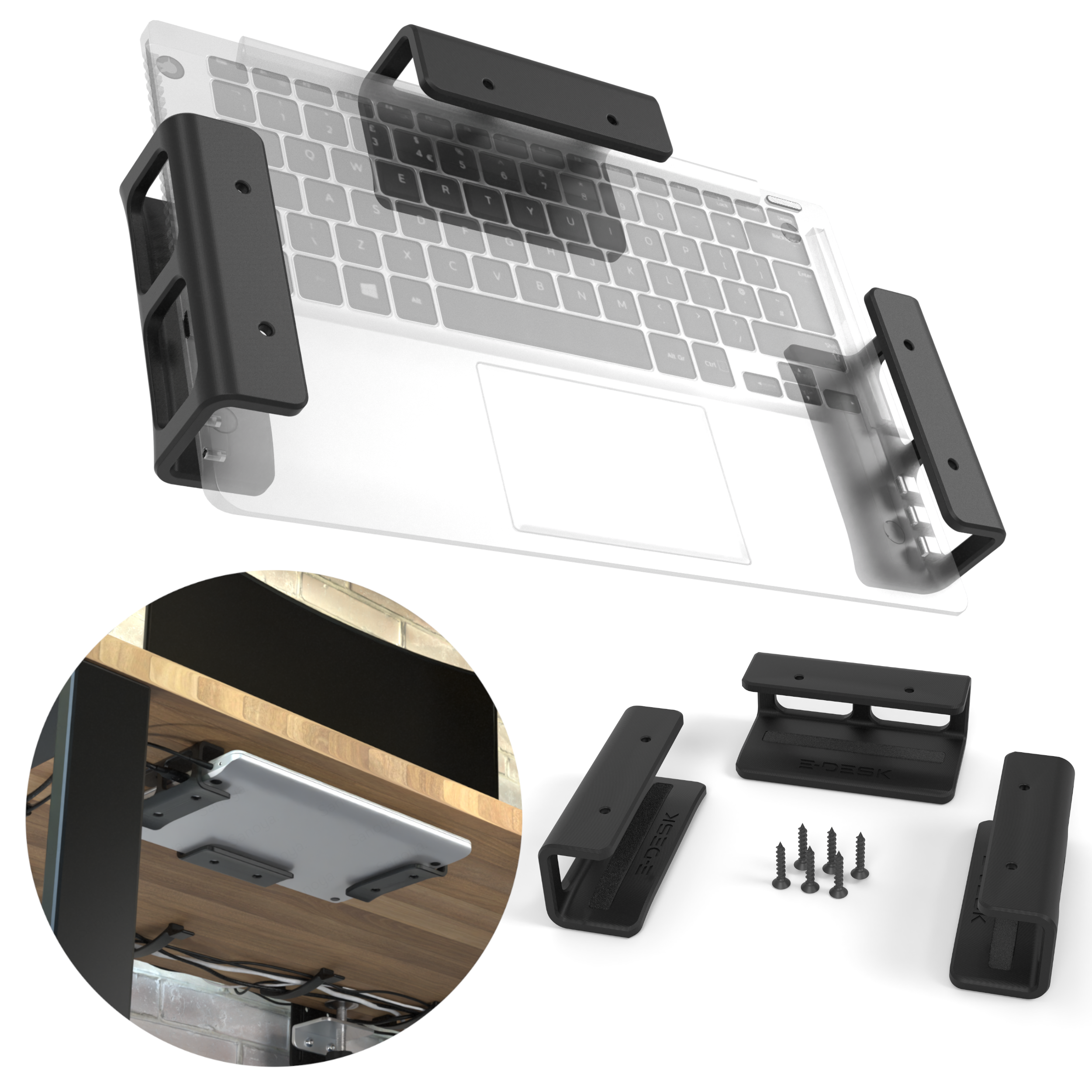 Odkryj nowoczesne i praktyczne rozwiązanie dla Twojej przestrzeni roboczej! Solidny uchwyt pod biurko, który umożliwia wygodne i bezpieczne przechowywanie laptopów, klawiatur, wzmacniaczy audio oraz innych urządzeń, chroniąc je przed zarysowaniami i niepożądanym przemieszczaniem.