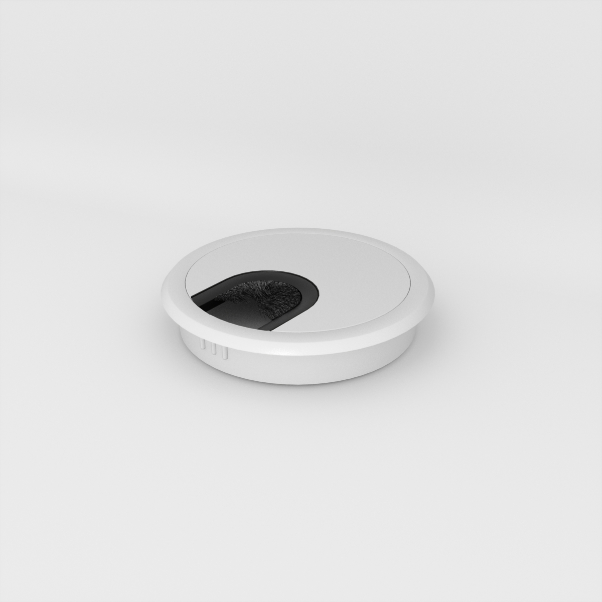 Metalowy przepust kablowy fi 60 mm umożliwia estetyczne prowadzenie pojedynczych przewodów od monitora, lampki czy ładowarki przez blat, zachowując porządek i schludny wygląd stanowiska pracy. To idealne rozwiązanie, jeśli masz niewiele kabli, a zależy Ci na eleganckim i minimalistycznym wykończeniu biurka.