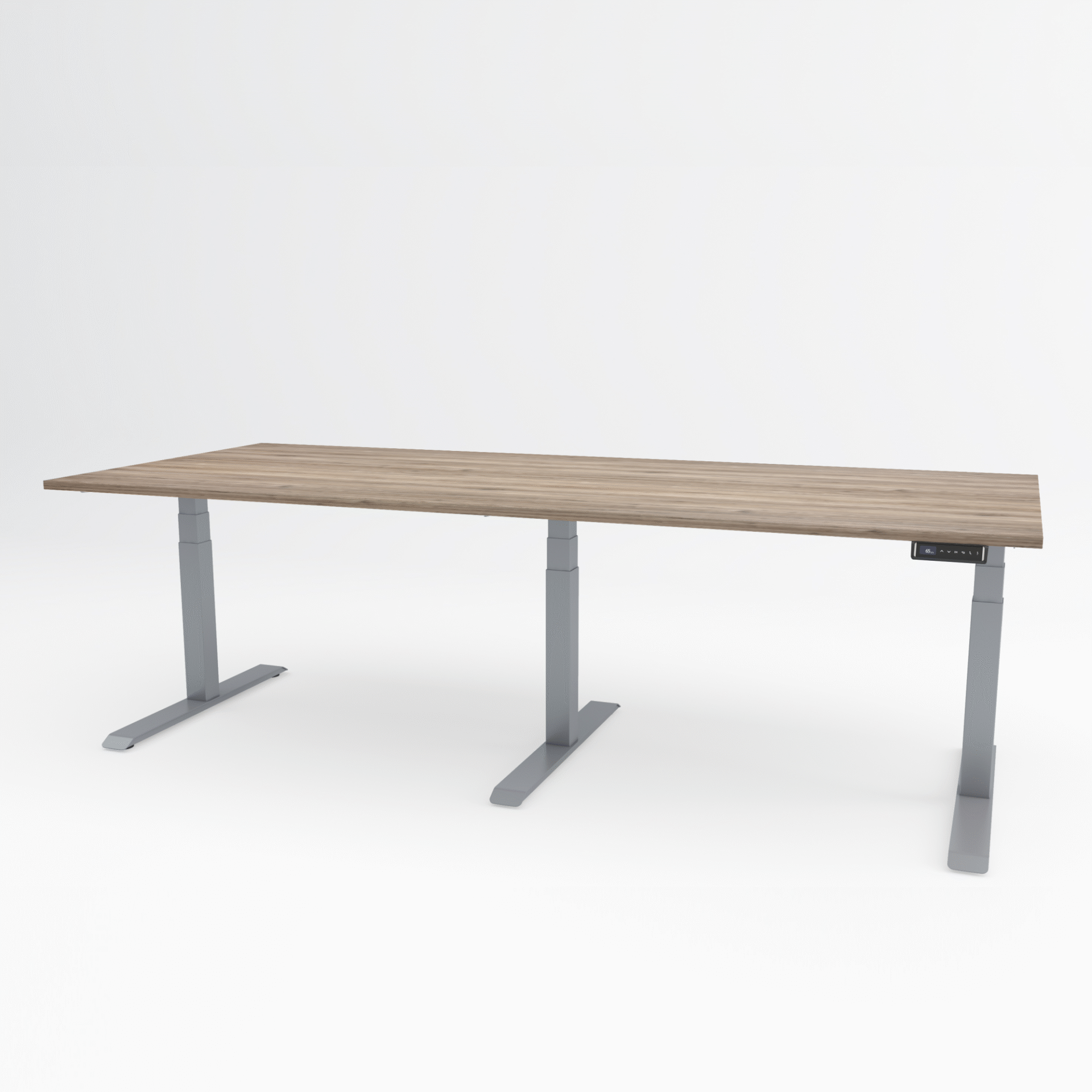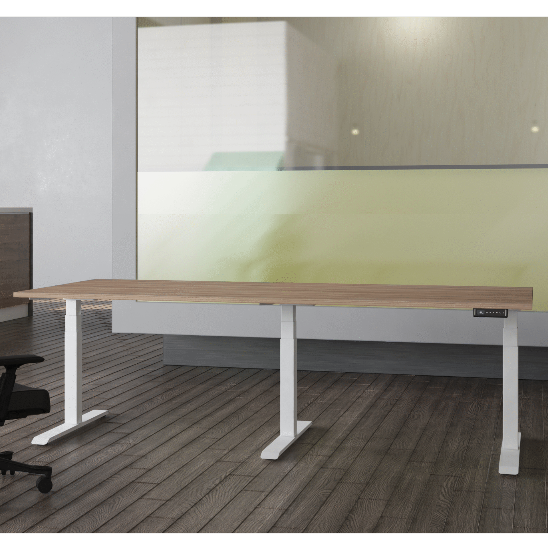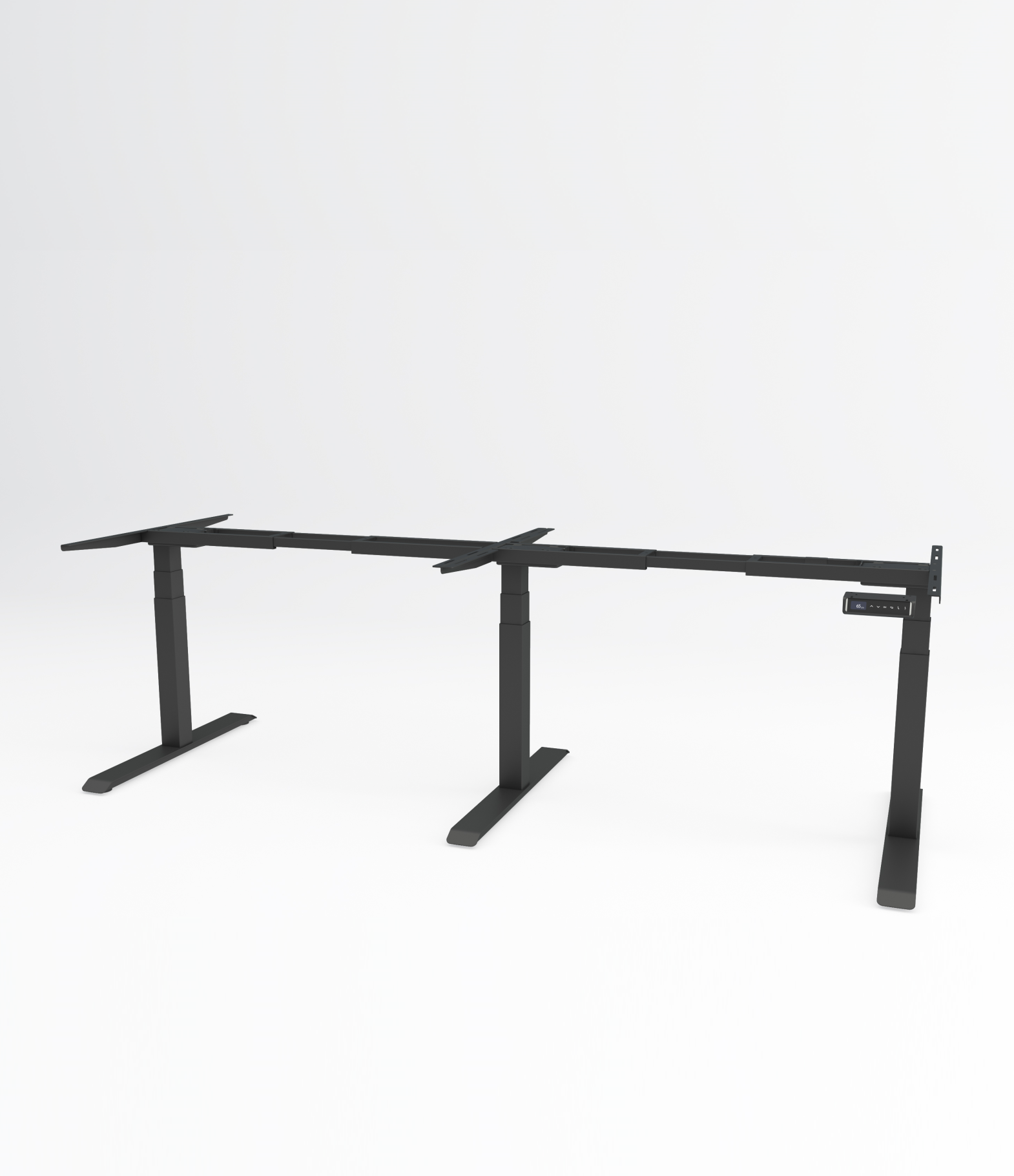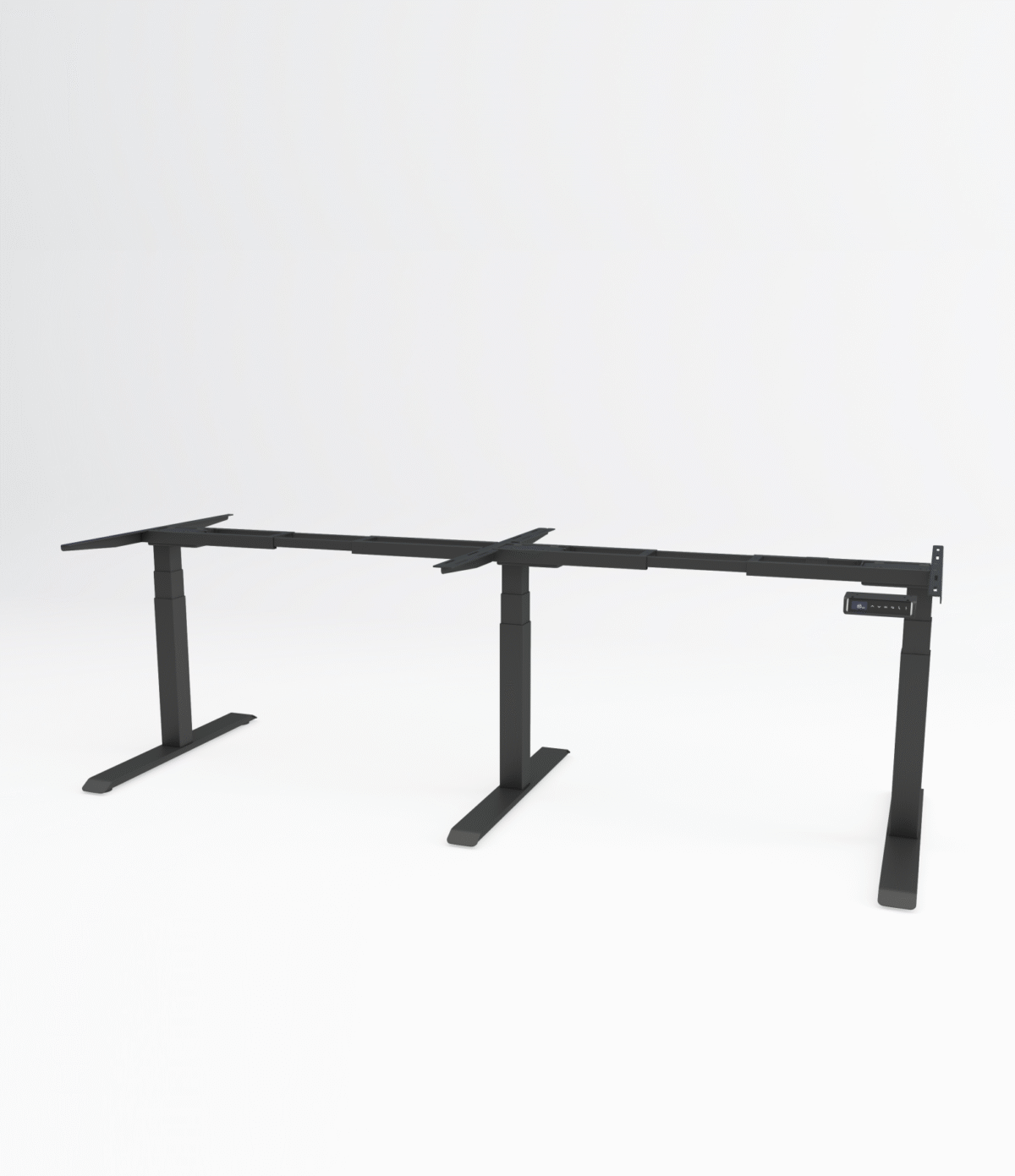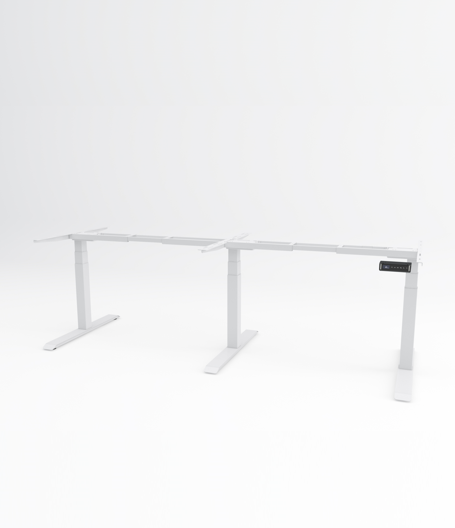 Stelaż E-DESK LINK to nowoczesne, ergonomiczne biurko z trzema silnikami, które zapewnia płynną i stabilną regulację wysokości. Konstrukcja wyróżnia się możliwością regulacji szerokości, co sprawia, że biurko doskonale sprawdzi się w różnych konfiguracjach spotkań i przestrzeniach biurowych.