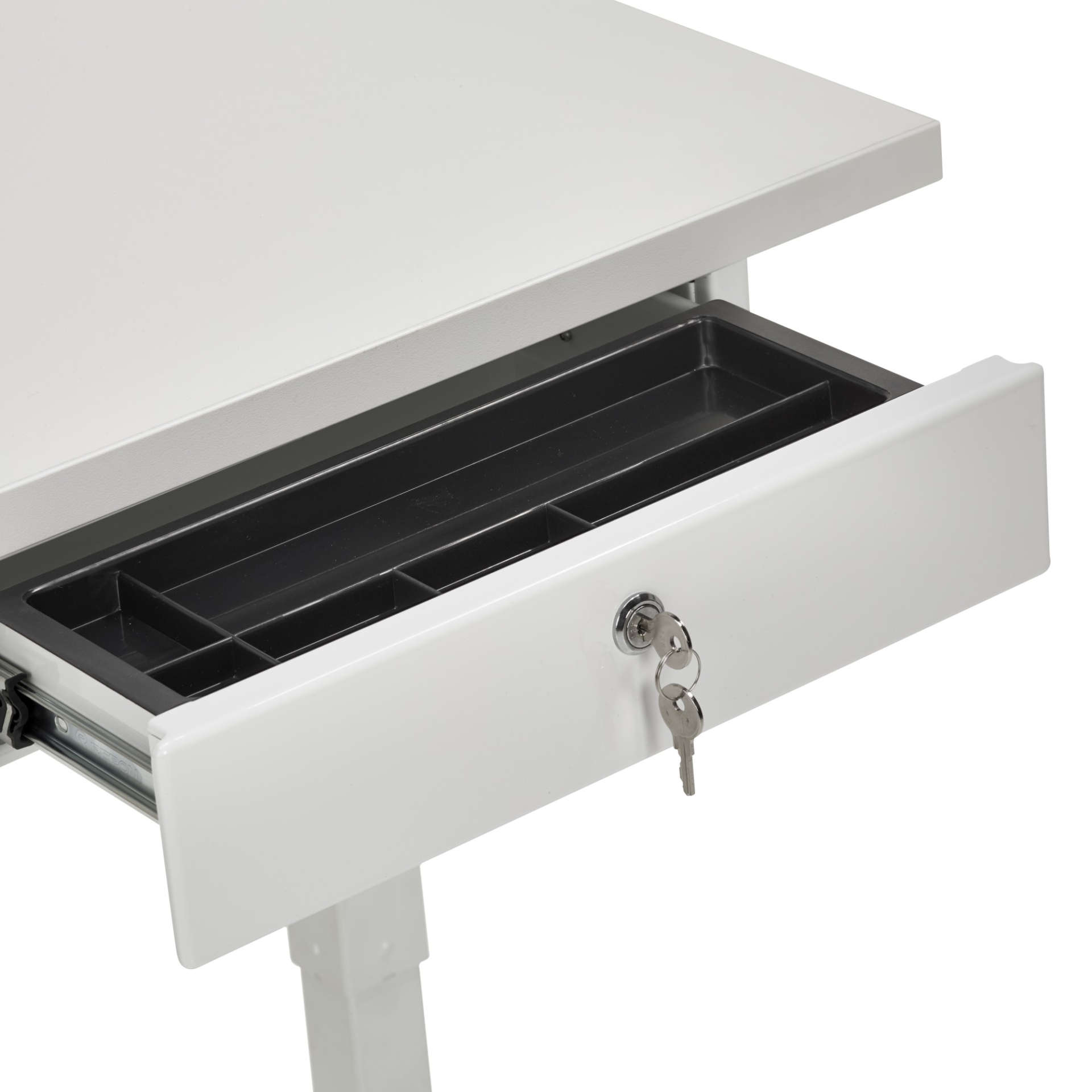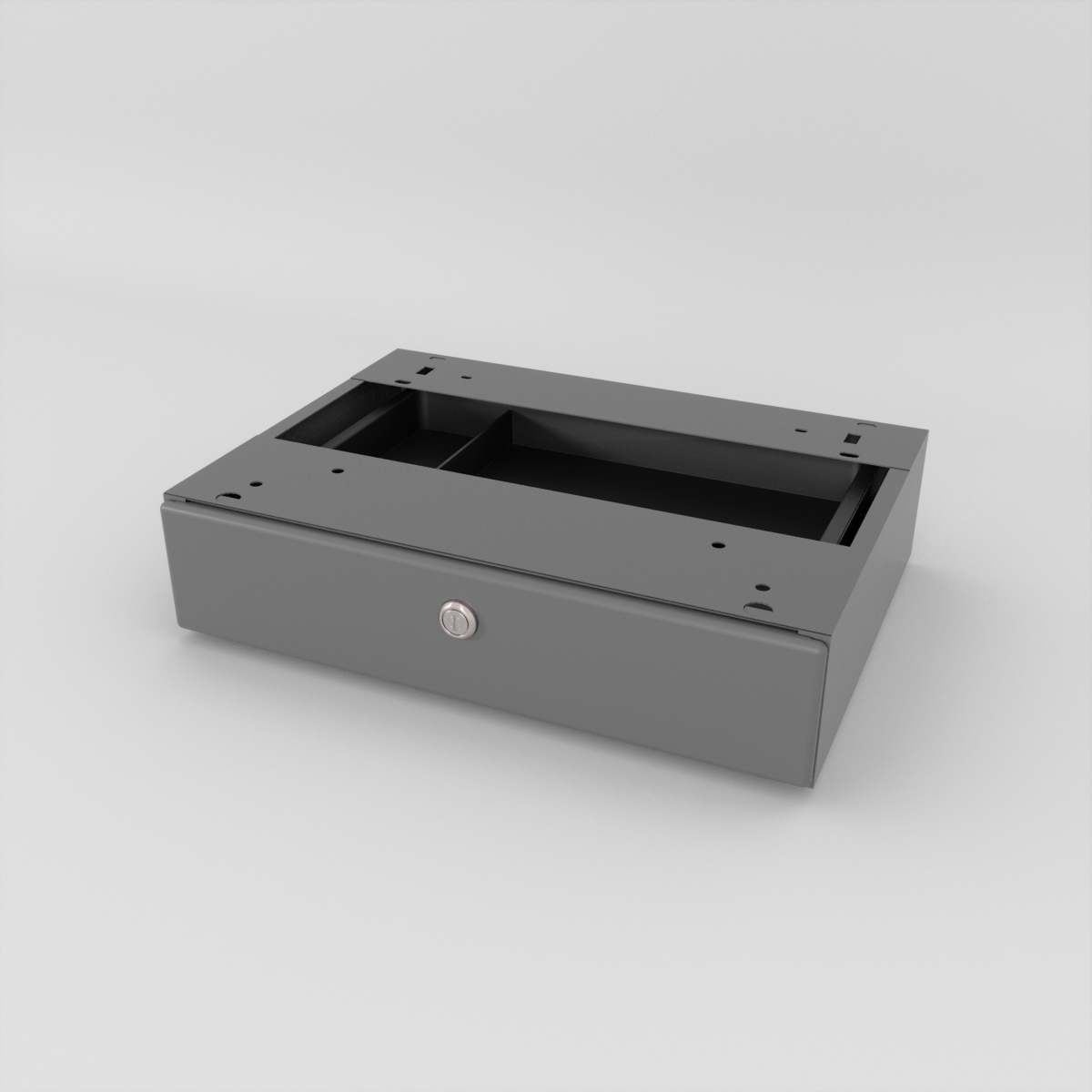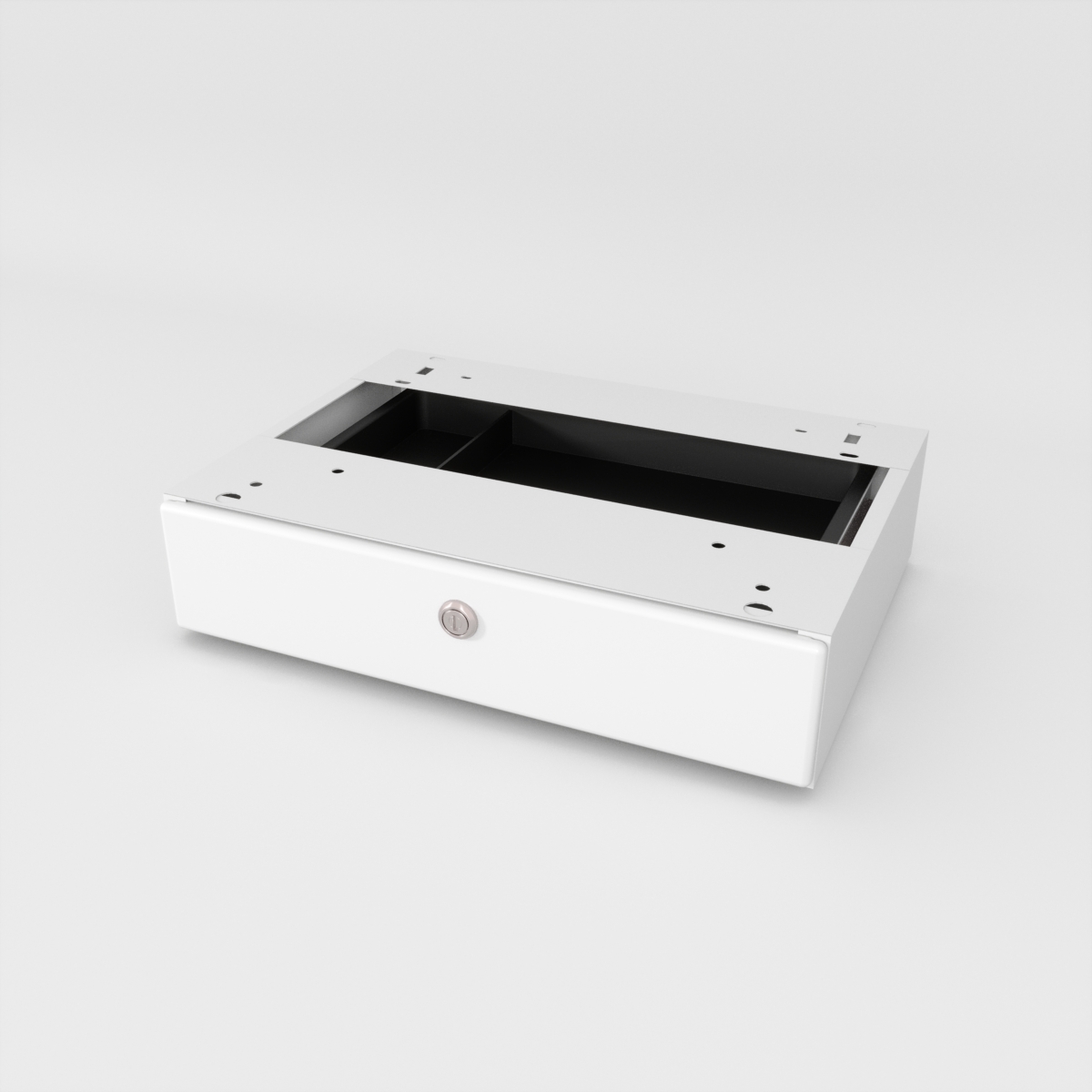 Metalowa szuflada z kluczykiem to praktyczne, kompaktowe rozwiązanie, które można zamontować uniwersalnie pod blatem biurka. Idealna do przechowywania ważnych dokumentów, przyborów biurowych czy osobistych drobiazgów, zawsze pod ręką, ale dyskretnie ukryta.