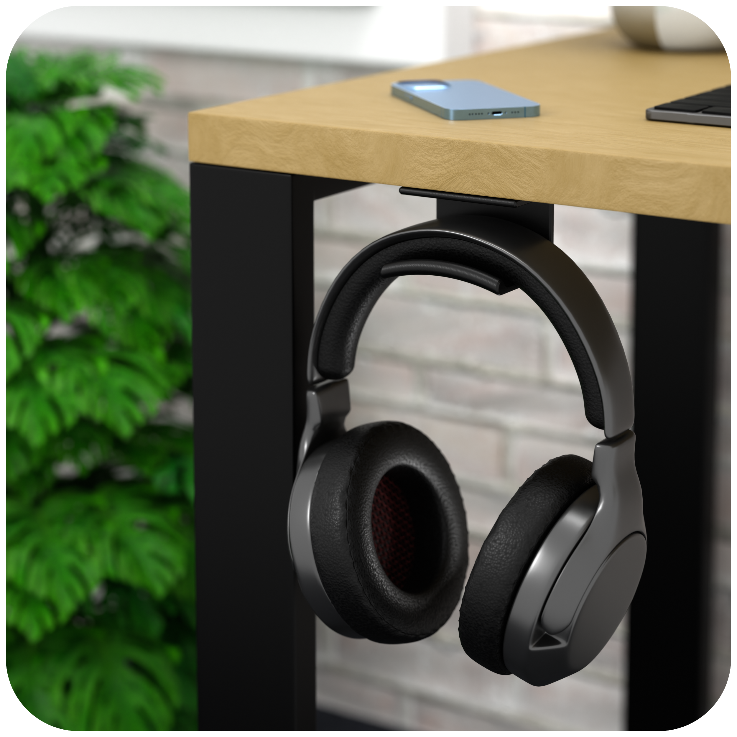 - Uniwersalny design – pasuje do każdego biurka i rodzaju słuchawek.