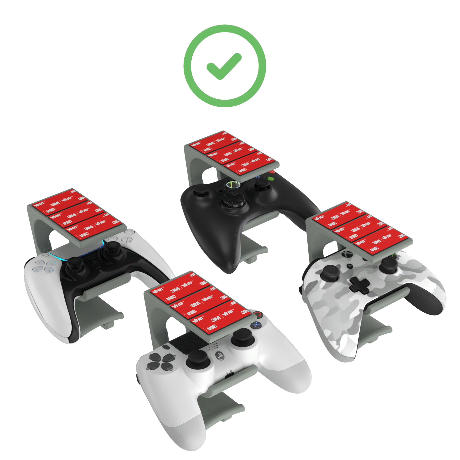 Uchwyt pasuje do większości kontrolerów dostępnych na rynku (PS4, PS5, Xbox, PC) i większości modeli słuchawek.